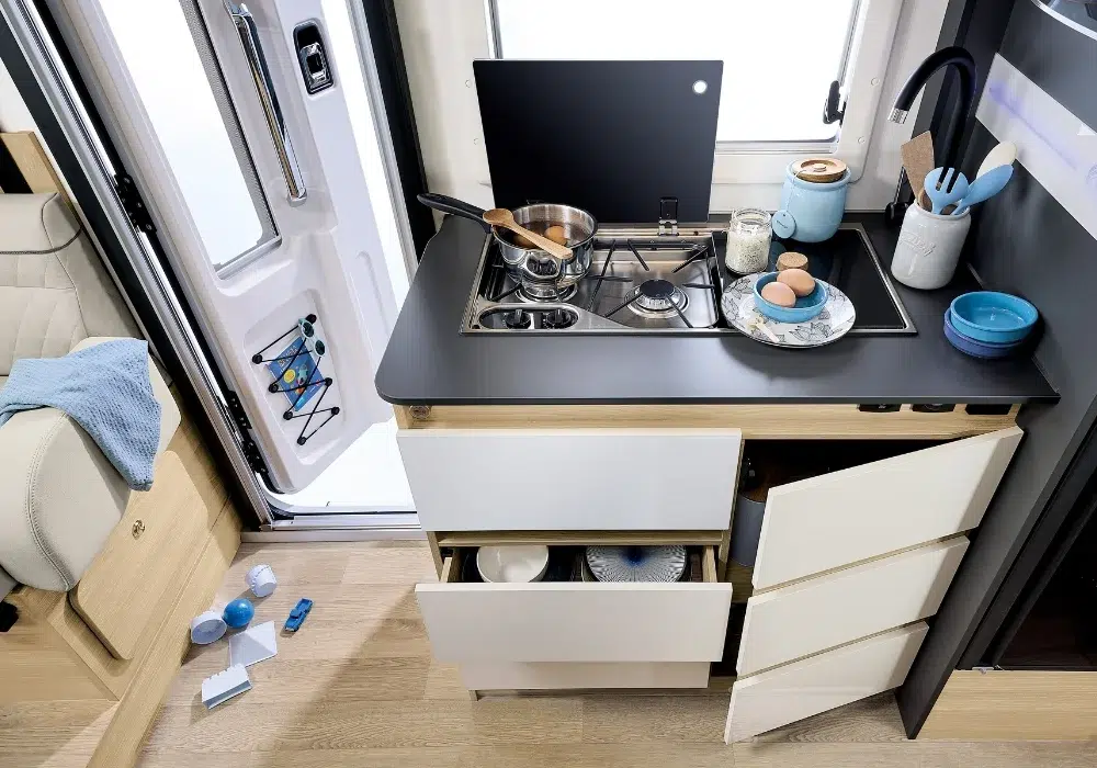 CS 660 впечатлява с отделно детско пространство, DUO’SPACE баня със завеса за уединение и практично, семейно ориентирано разпределение.