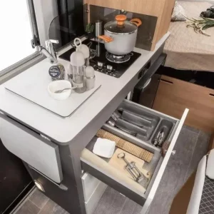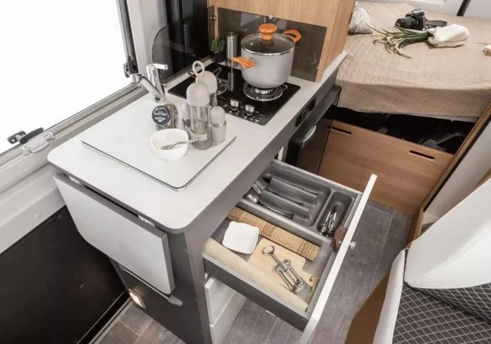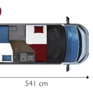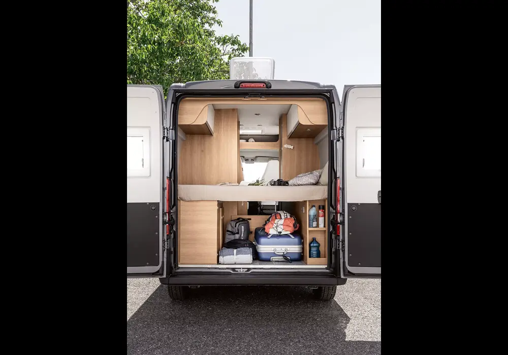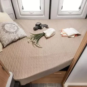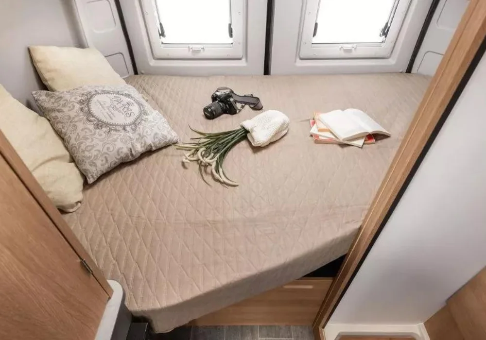 Моделът разполага с двойно легло в задната част и допълнително легло в зоната за хранене.