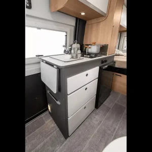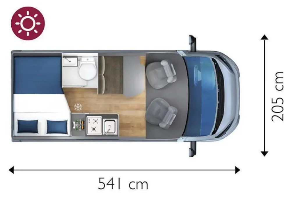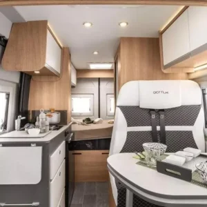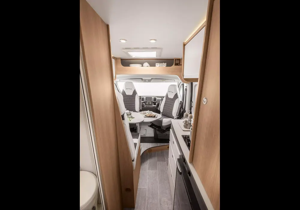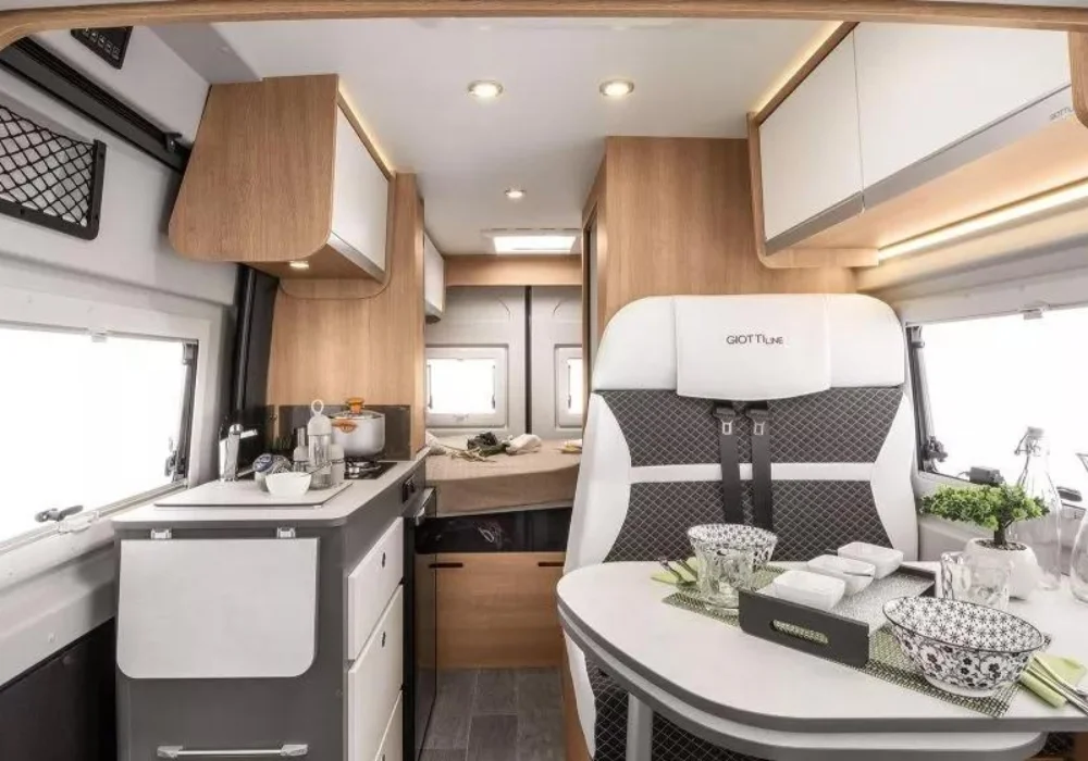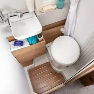 GiottiVan 54 T се отличава с наличието на отделна баня и тоалетна – рядкост при компактните кемпери, осигуряваща допълнителен комфорт.