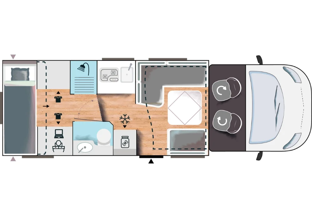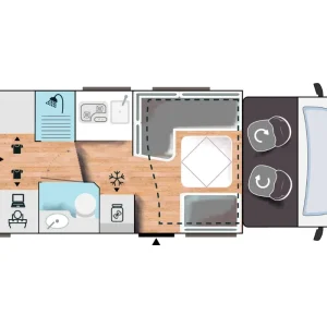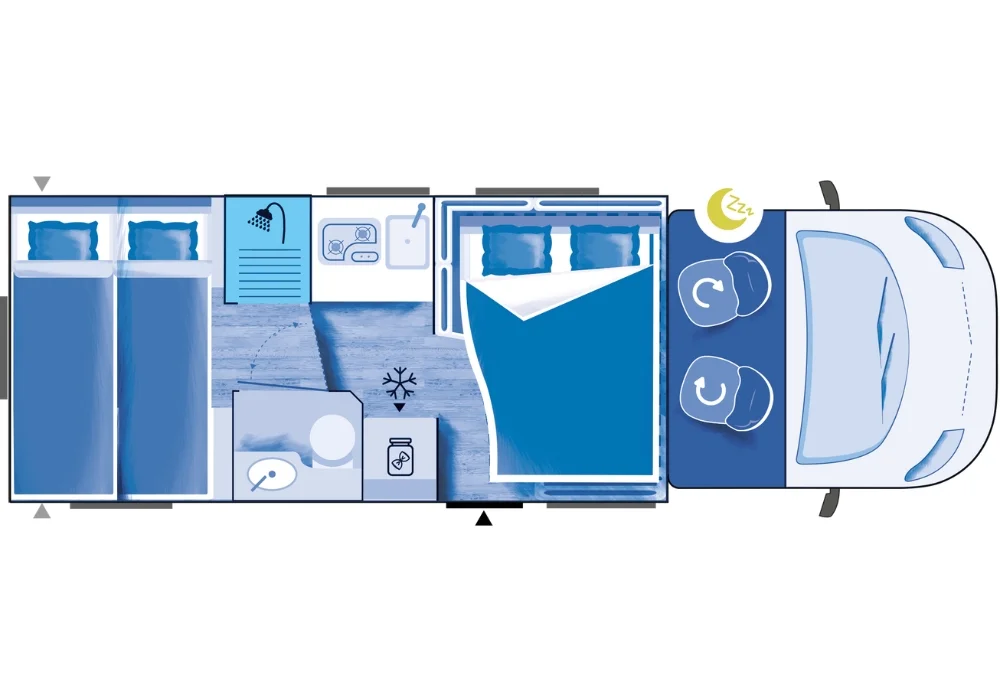 Моделът предоставя до 6 удобни спални места, разпределени в няколко зони – идеален избор за семейства или групи.