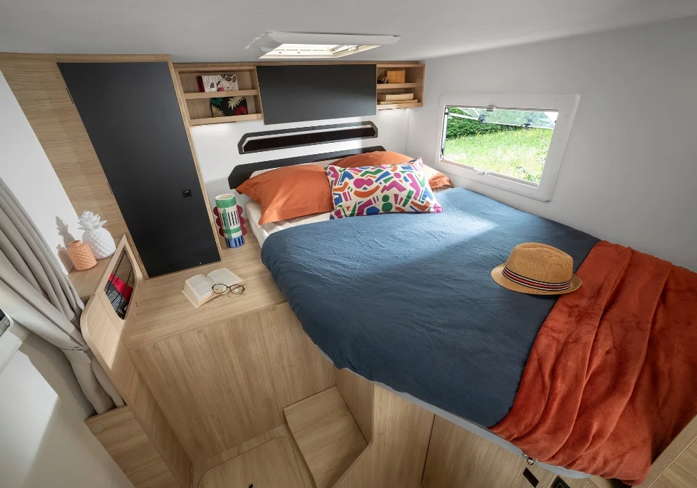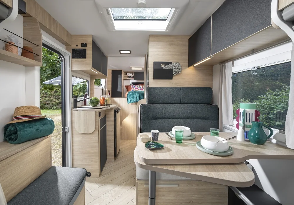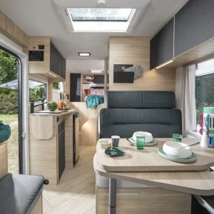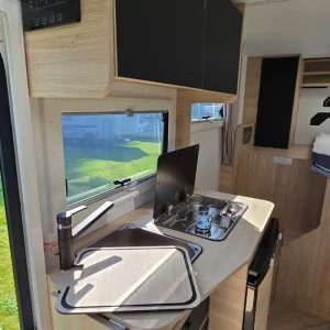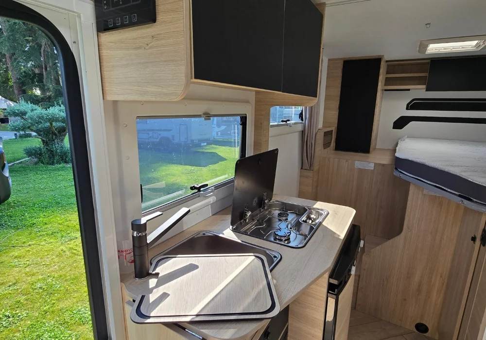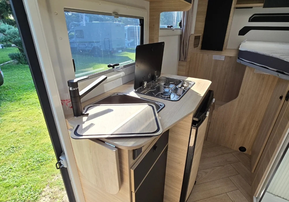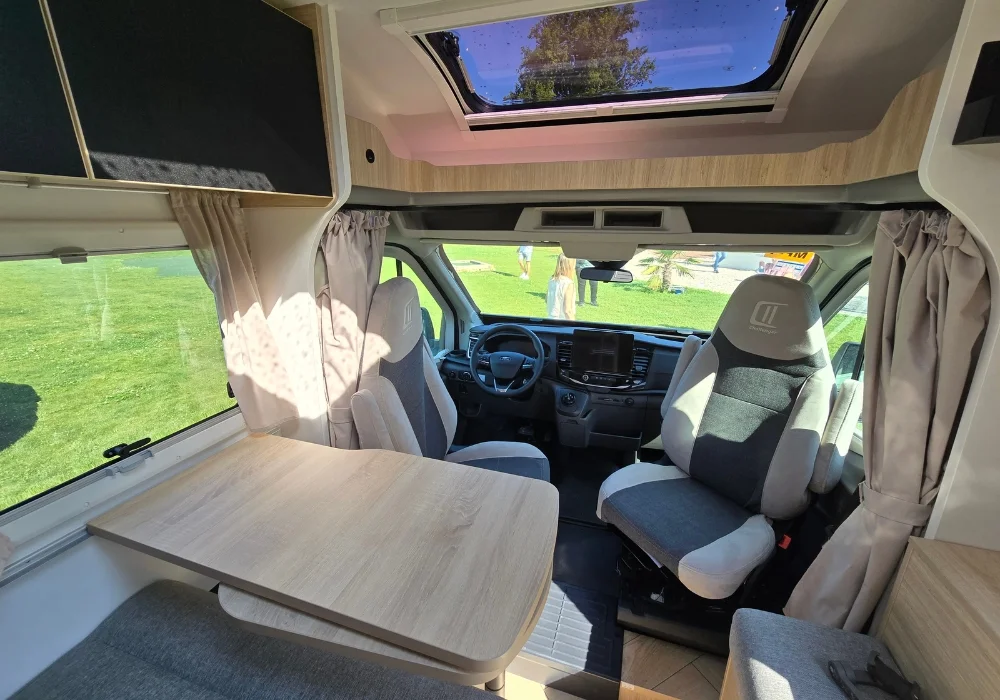 Кемперът предлага 4 седящи места и 2+1 спални места – удобен избор за двойка или малко семейство.