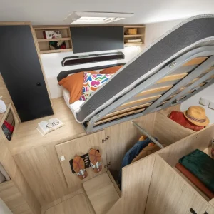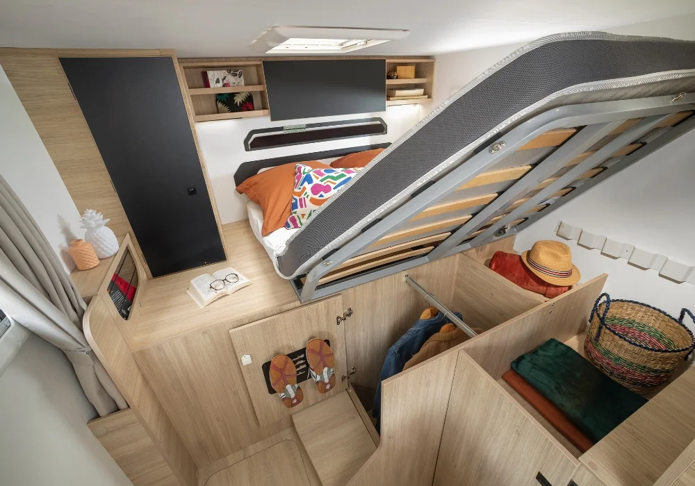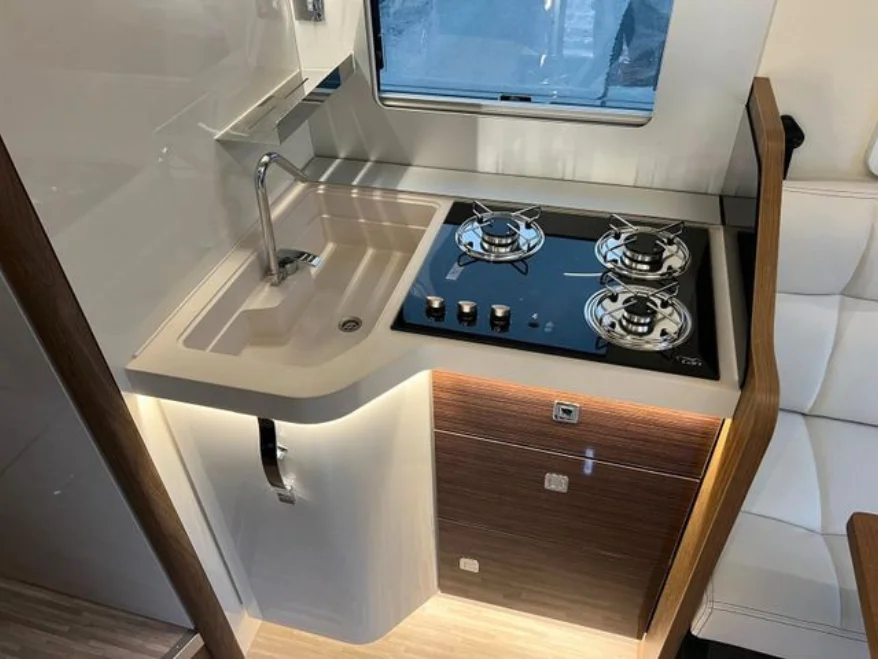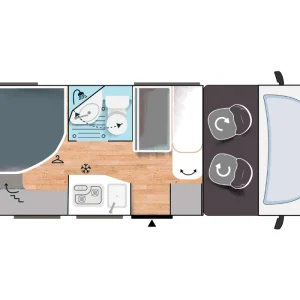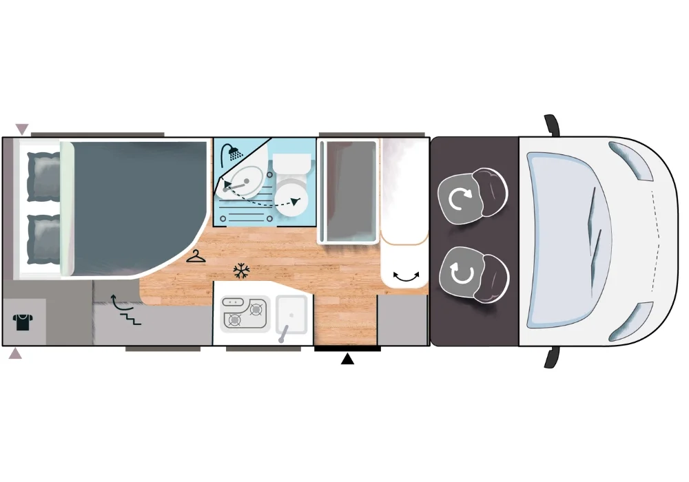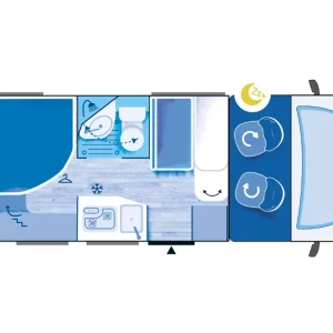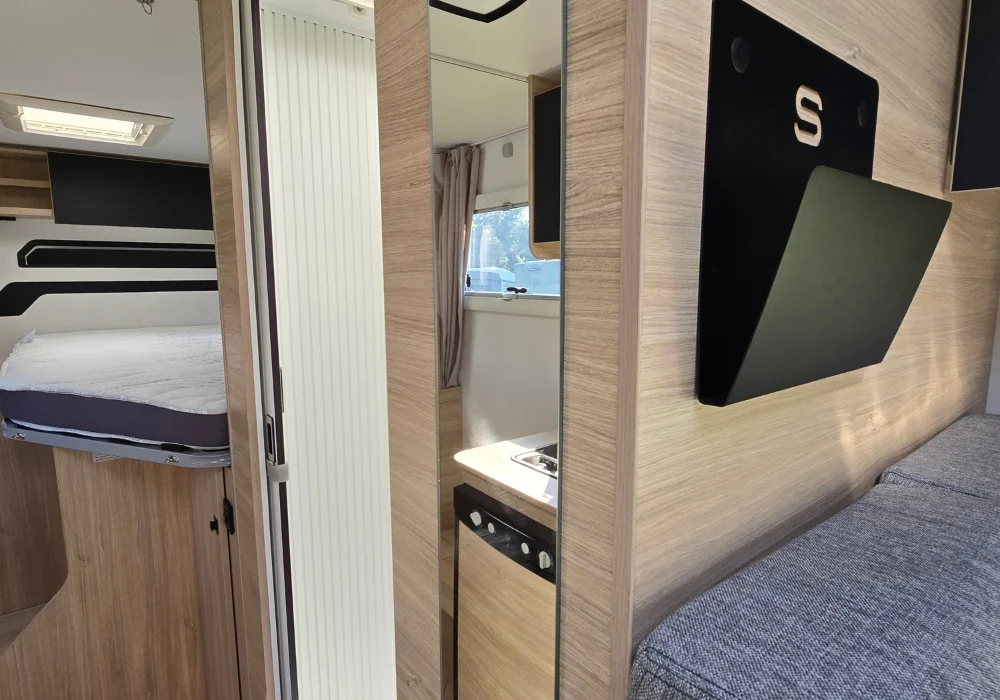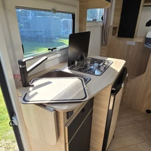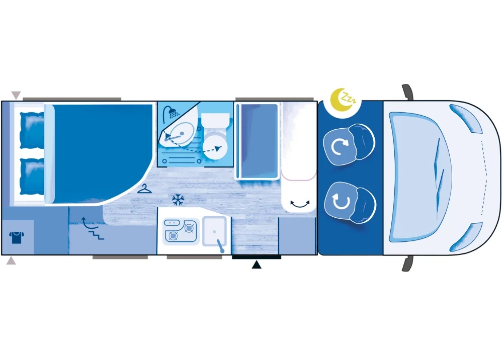 Кемперът предлага 4 седящи места и 2+1 спални места – удобен избор за двойка или малко семейство.